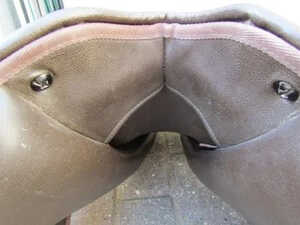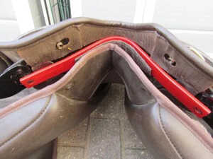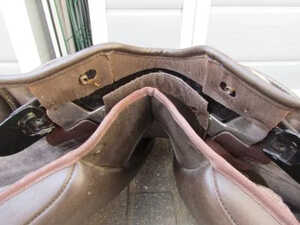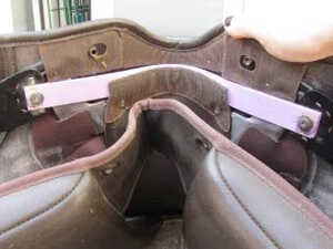 Next you will need to put the tree plates back into the keepers, if you look down the side of your saddle flap you will be able to see the keepers each side which will look like the pic. Once you have located the keepers, simply slot the tree point back into them firmly and you should be left with something that looks like this.