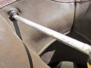 Now comes the trickiest part which is sticking the tab back to the Velcro, when doing this it’s extremely important to line the holes in the protective flap up with the metal cylinders which you will need to screw the screws back into, if you don’t line these up properly you will be unable to put the screws back into the saddle.