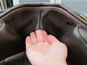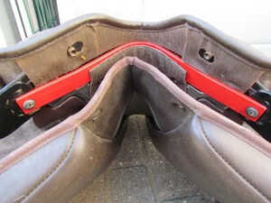 Once you have your new gullet, it’s time to determine where the screws are on your saddle. In older Wintec & Bates saddles screws can be located under the pommel, and can be easily seen if you sit the saddle on it’s cantle as per below.