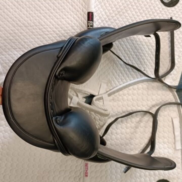 Back to AmerigoBlack 17.5" Calfskin Leather Amerigo M+1 Fit Dressage Saddle - USED